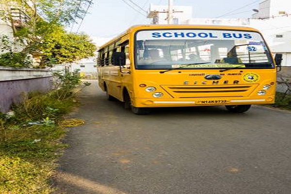 We have special school buses for our students that travel along specific routes to pick up and drop off children at designated locations.