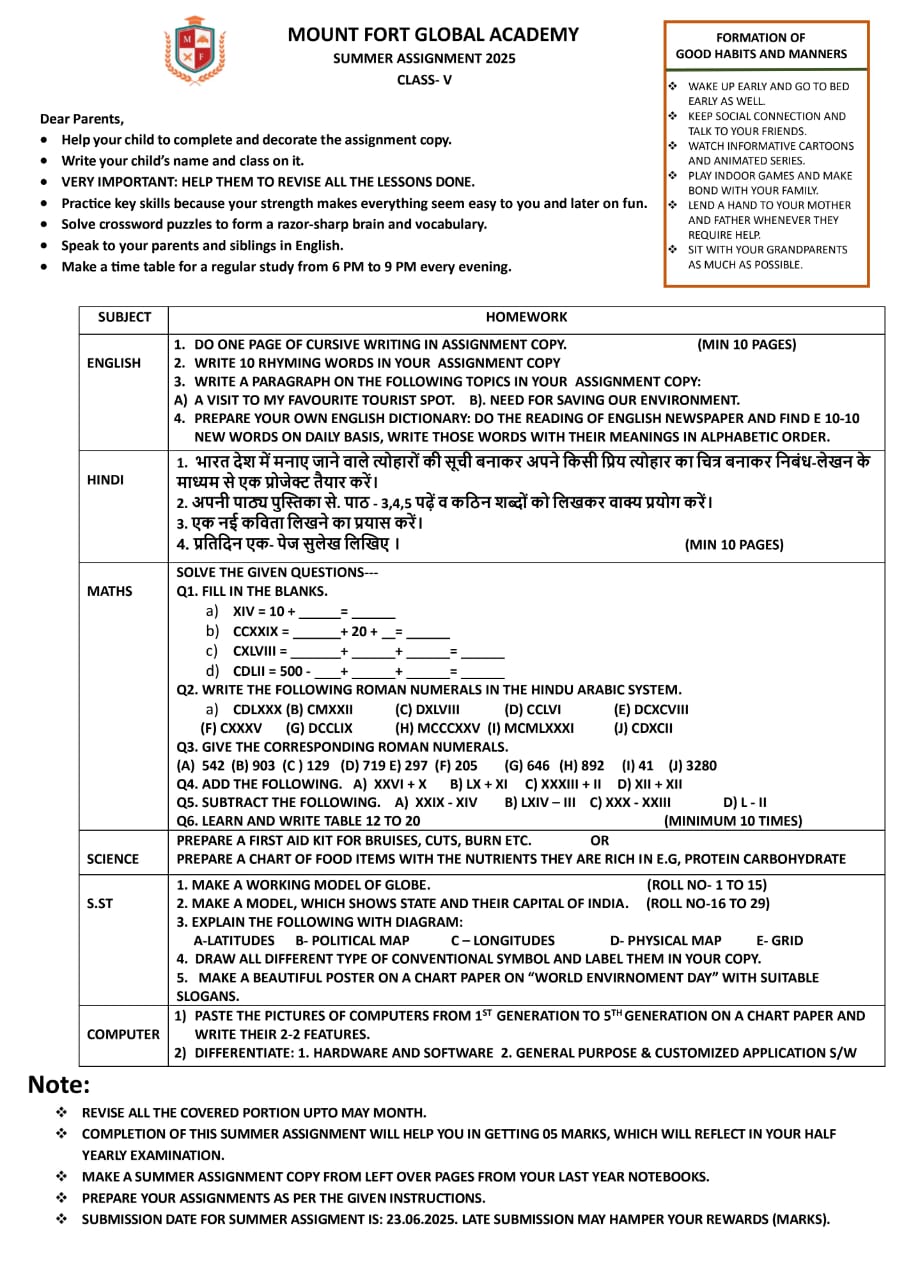 | 1. | Nursery | Click to download |