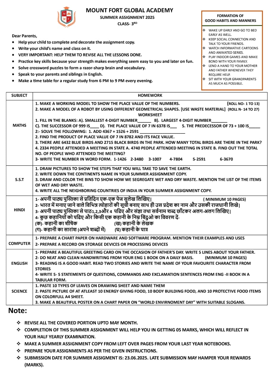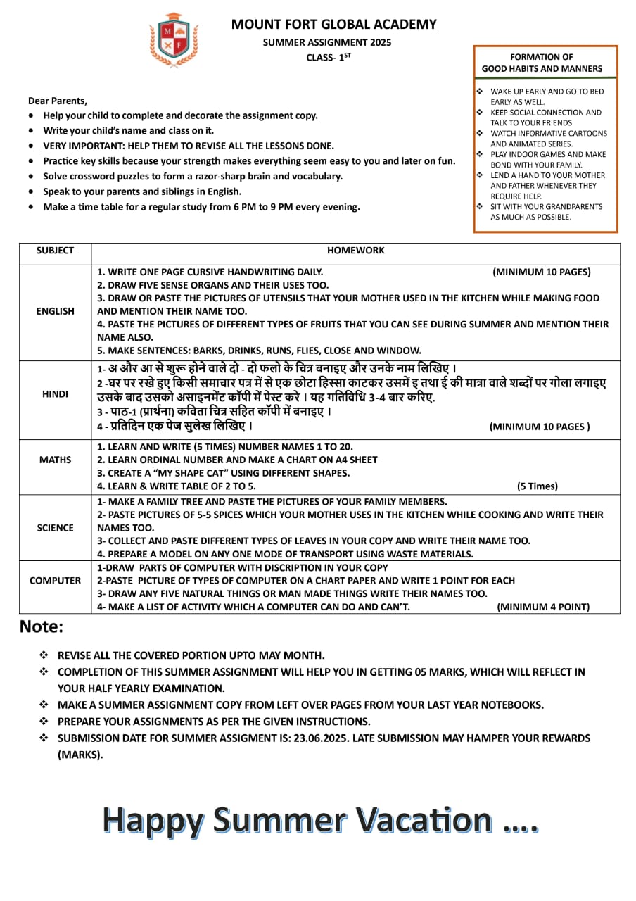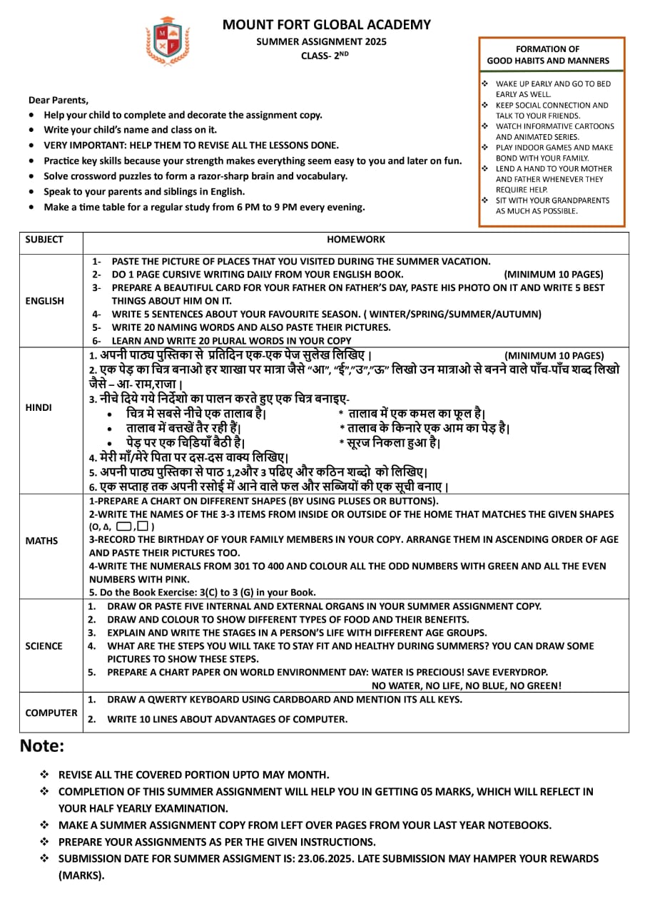| 1. | Nursery | Click to download |